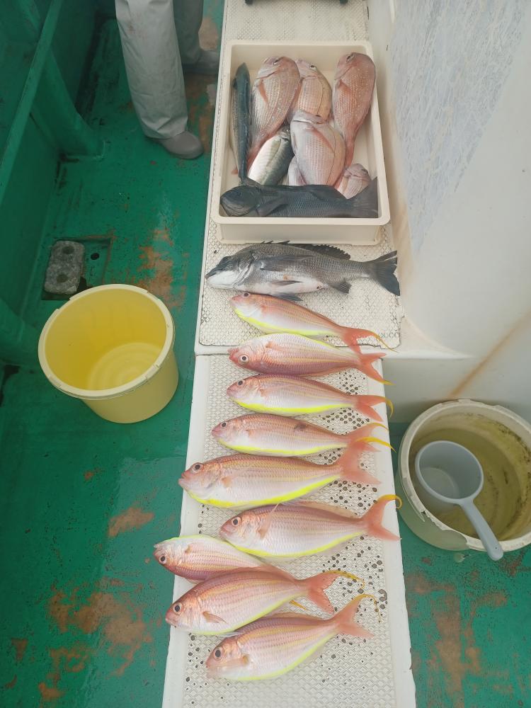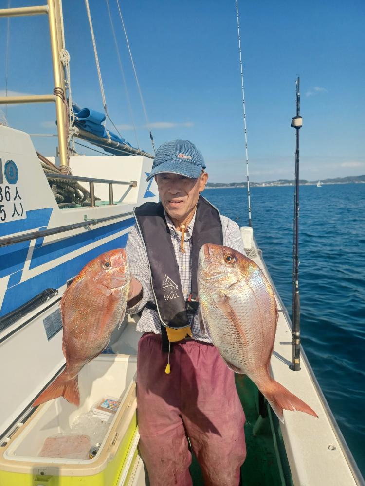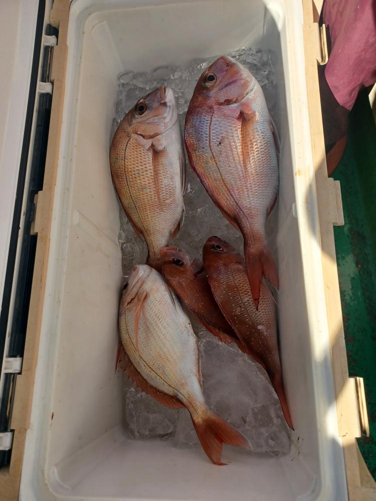 今日はマダイはトップ3枚でした、外道はハナダイ、アマダイ、イナダ、イトヨリ、ソウダガツオなど交じりました、出船してから北東の風が強く吹きました、明日は仕立船の為、乗合船は休船します。