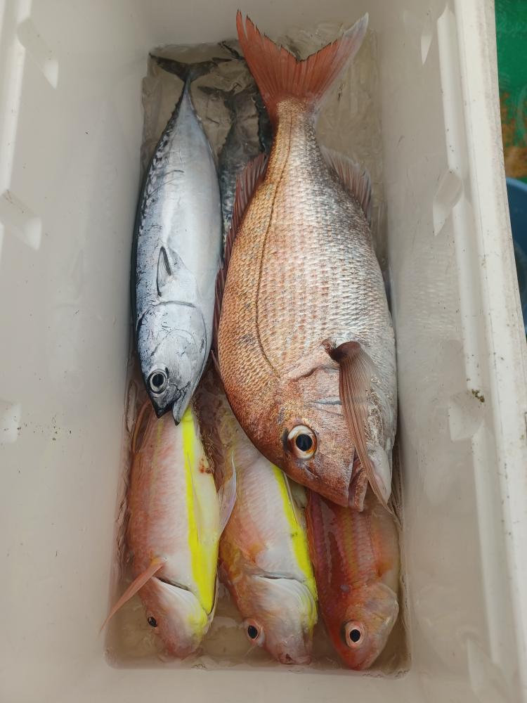 今日はマダイはトップ2枚でした、外道はハナダイ、イナダ、イサキ、イトヨリ、ヘダイ、アジ、サバ、シイラなど交じりました、ウネリあり前半は北風もやや吹きました、台風の通過後の食いに期待しましょう。