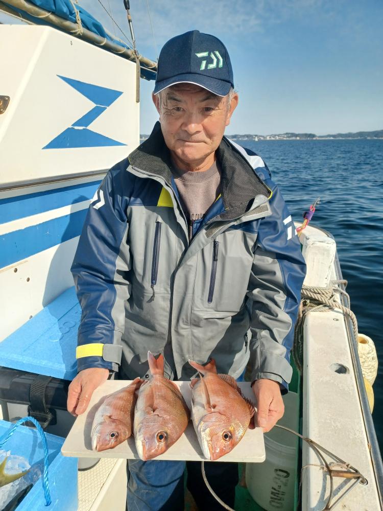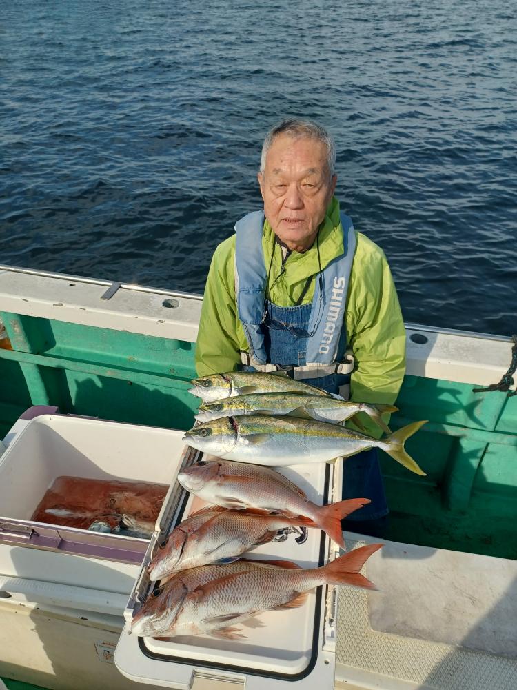 今日はマダイはトップ3枚でした、外道はハナダイ、イナダ、カイワリ、イトヨリ、サバ、平ソウダ、シイラなど交じりました、前半は北風が強かったです、明日はお休みします、明後日はアマダイ船が出船、マダイ船は休船します。