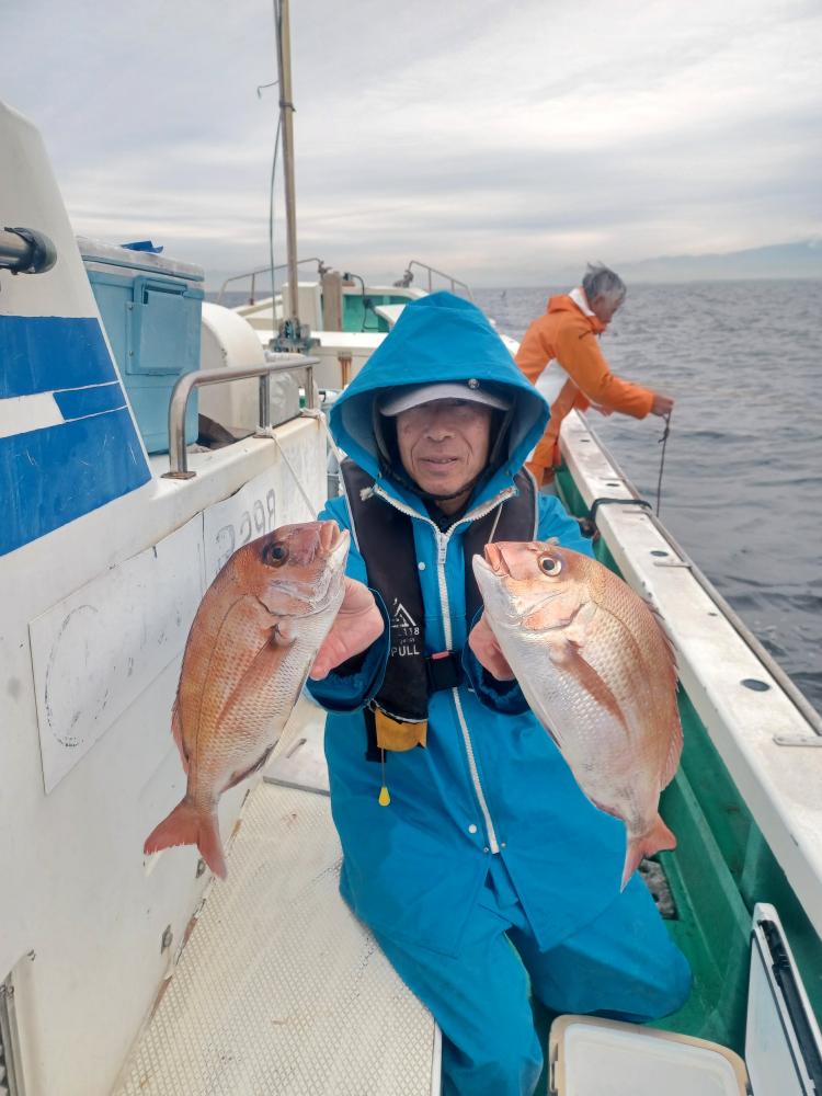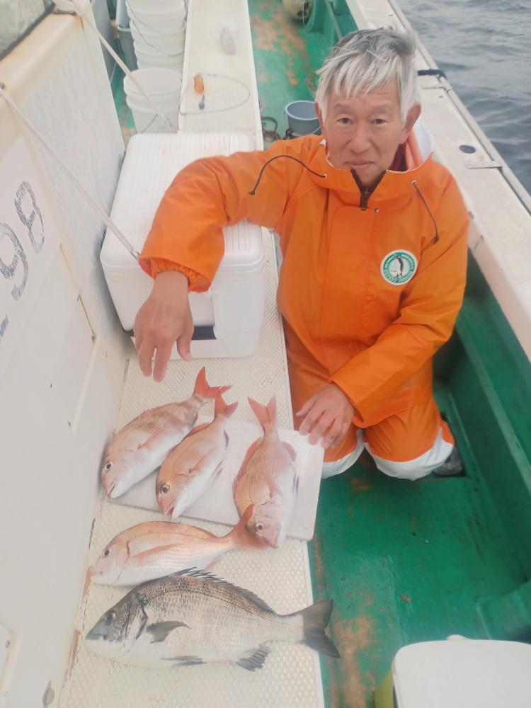 今日はマダイはトップ4枚で船中9枚と順調でした、外道はハナダイ、クロダイ、カイワリ、平ソウダ3~10尾など交じりました、雨も大した事なくナギでした、明日も出船します。