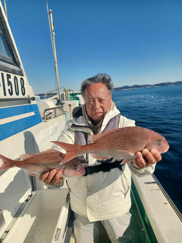 今日はマダイは2名様で3枚釣れました、外道はアマダイ、イトヨリなど交じりました、後半はいいナギになりました。